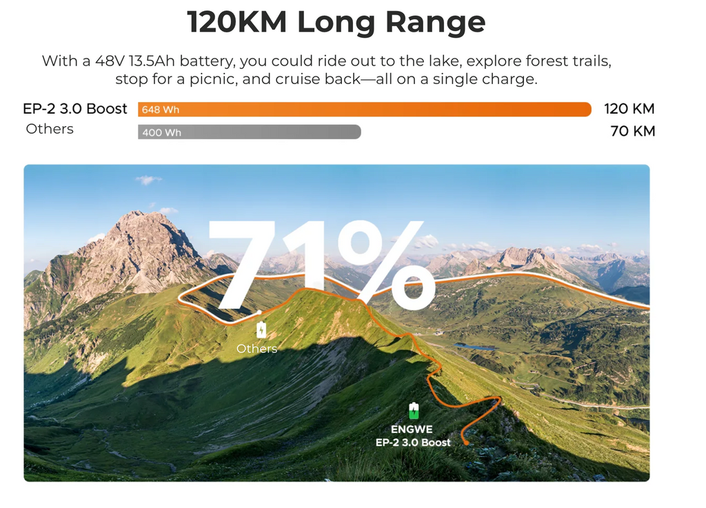 48V 13.5Ah (648Wh), 21700 Cells with BMS Protection |