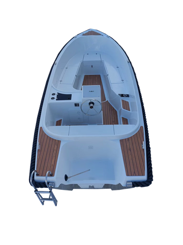 A unit ideal for trips for the whole family, the Giant 550 Prestige takes on board up to 7 people. The model is designed to make time spent on the water an absolutely great rest. Comfortable seats in the front, a wide sofa in the back and a huge sun deck provide maximum relaxation. We have also designed steps on both sides of the boat and numerous storage compartments that will accommodate all the necessary things. The Giant 550 PRESTIGE is a stable and deep unit. The boat makes a great impression, and at the same time is very practical, safe and sails wonderfully. Thanks to a wide range of additional equipment, it can be configured in a very interesting way. Beautiful finishes and accessories are already available in the standard version of equipment.