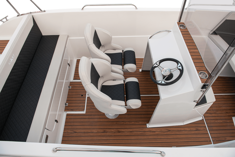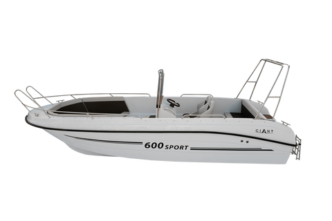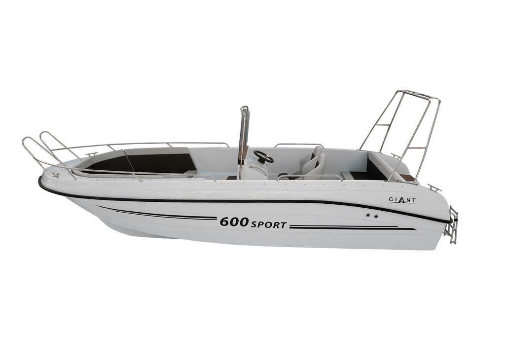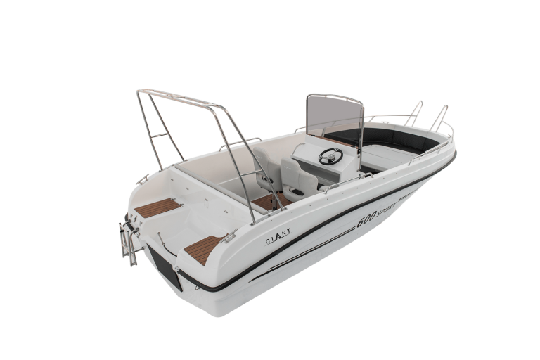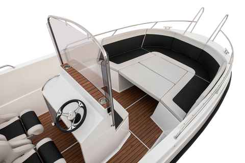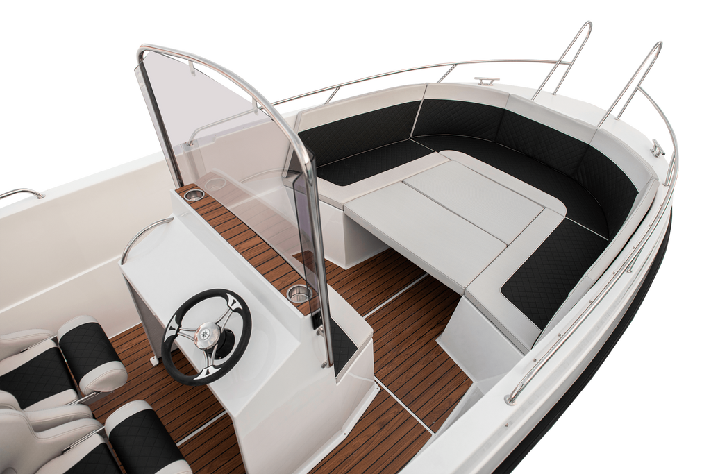 The 600 Sport unit offers many possibilities of deck development. The wide control console can be mounted at the rear sofa or in the central point of the boat together with two armchairs. Additionally, the boat can be equipped with side storage compartments at the front, which will also be the basis for the sun deck. It all depends on your needs, you can have a boat with maximum usable space or a comfortable recreational unit on which 10 people will have a nice time. Bathing platforms are also a great option, which perfectly expand the capabilities of the 600 Sport boat. The solid construction allows for the installation of an engine with a maximum power of 250HP and the load capacity of this unit is up to 1400kg.